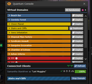 Сердце вашего погружения в виртуальную реальность зовётся "квантовым сервером", это груда металла с ужасно подключёнными проводами в вашем логове. Квантовый сервер загружает домены по одному за раз и очень сильно перегружается при загрузке нового. Эти домены подразумевают под собой бои или головоломки, в результате которых вам надо будет найти запечатанный ящик (кэш) и доставить его обратно в безопасную зону, где вы загружаетесь. После этого ящик материализуется на станции, а вы получите очки.
